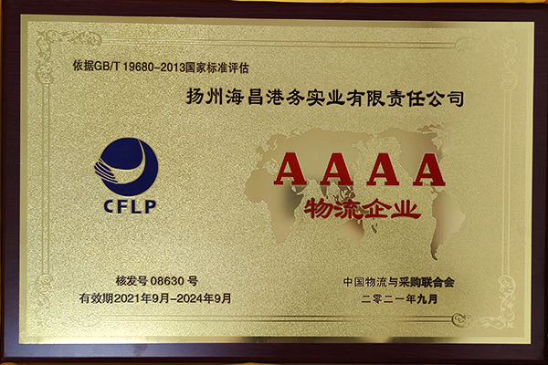揚州海昌榮獲“國家AAAA級物流企業” 認定