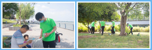 騎行活動結(jié)束后,參與員工隨即投入到環(huán)保知識公益宣傳與公園清潔活動中,他們用自身的專業(yè)知識和勤勞的雙手,以實際行動向公園的游客、市民普及環(huán)保知識,并向他們發(fā)出號召:美麗家園需要每個人參與,攜手行動,踐行環(huán)保綠色新方式!