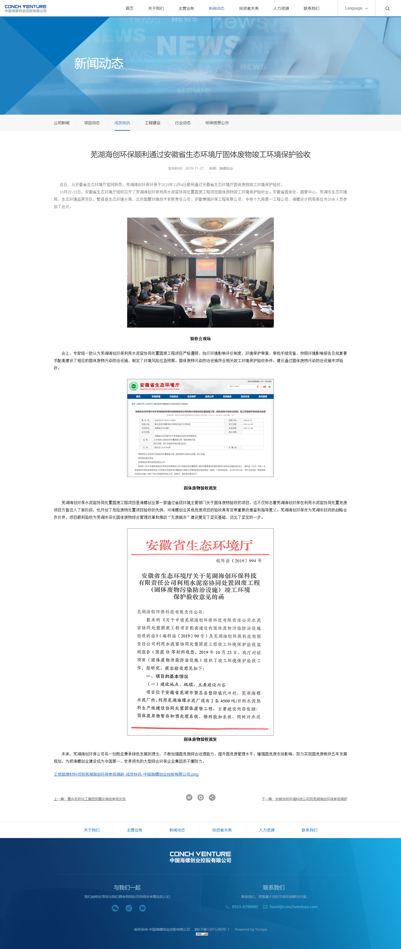 近日,從安徽省生態環境廳官網獲悉,蕪湖海創環保環保于2019年11月4日順利通過安徽省生態環境廳固體廢物竣工環境保護驗收。