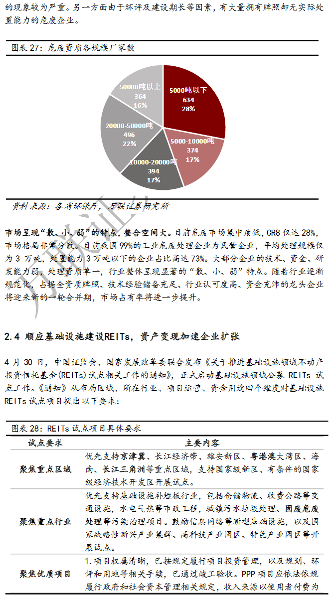北極星固廢網獲悉,萬聯證券測算2020年工業危廢年產量已超過1億噸,但由于持證企業產能利用率低、處置種類錯配等因素,持證危險廢物處理規模僅達34%,CR8僅達28%。伴隨政策落地以及運營監管的加強,未來行業將逐漸規范化,龍頭企業將迎來新的一輪合并期,市場占有率將進一步提升。