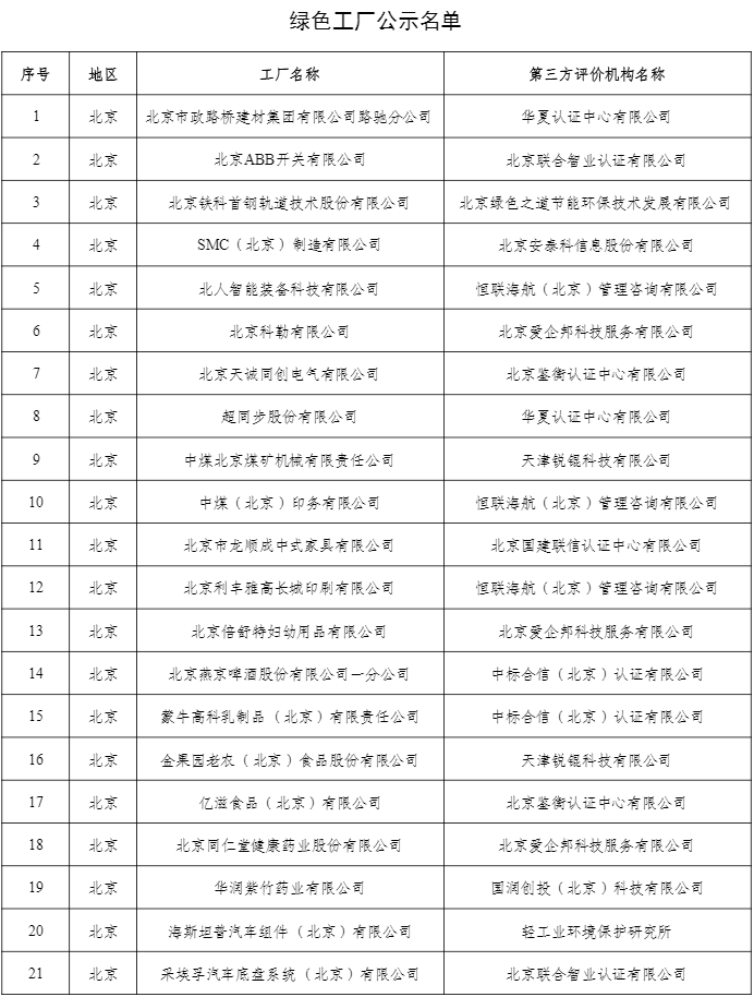 2021年度綠色制造名單公示