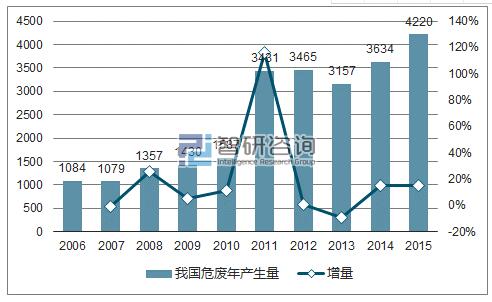 2006-2015年我國危廢產生量